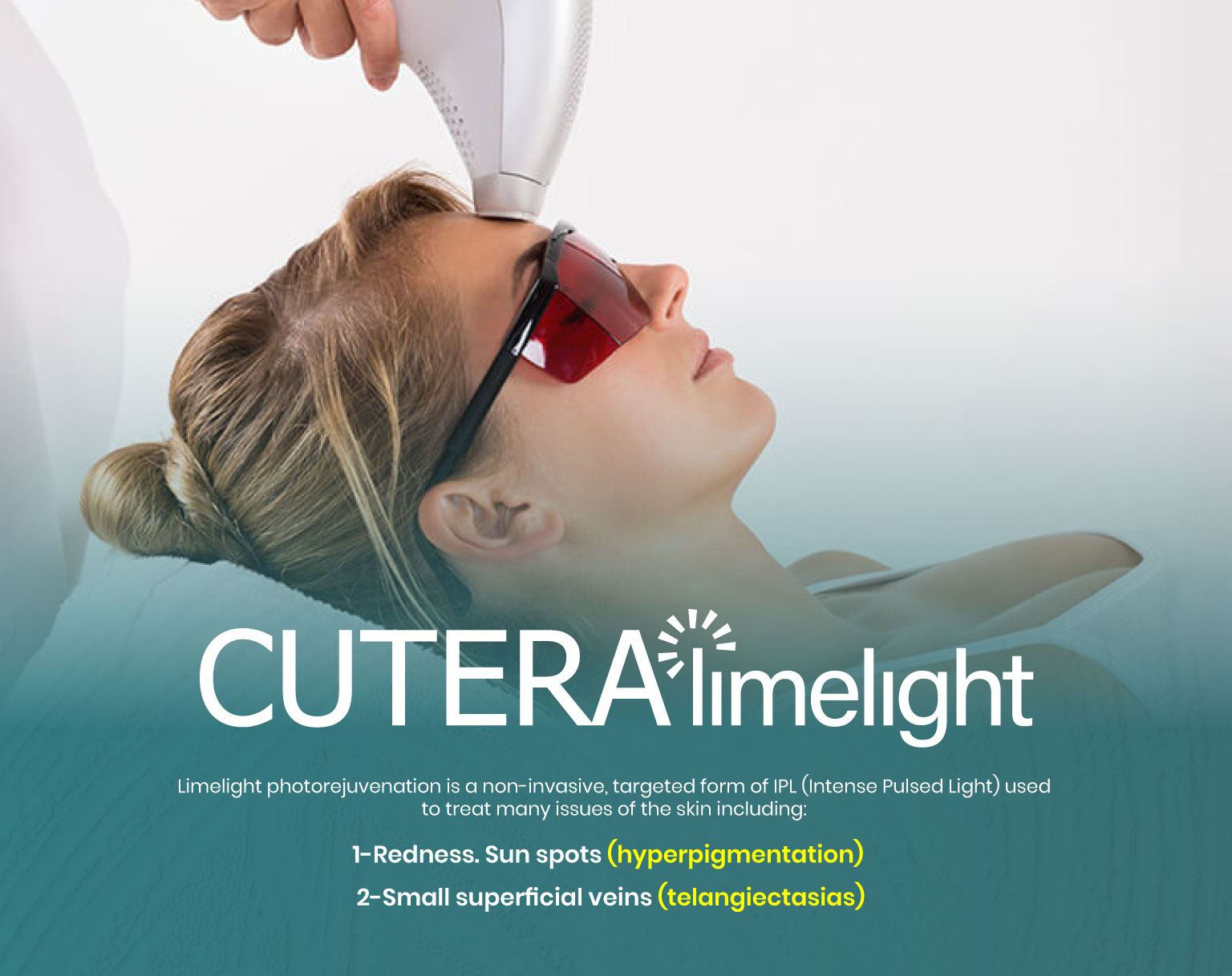 Cutera limelight IPL (light based laser) is a medical grade, non invasive light based laser designed to combat age spots, freckles, skin redness, tiny veins and sun damage.