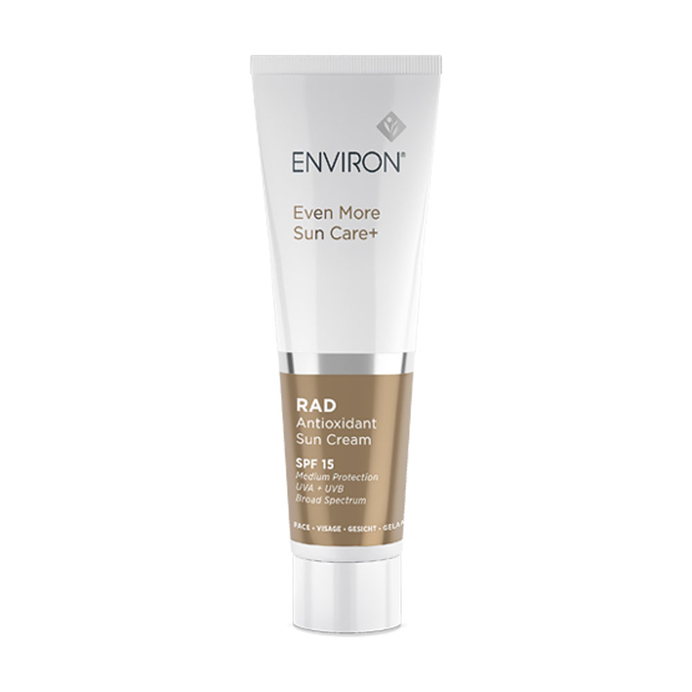Environ RAD Antioxidant Sun Cream contains sun filters & reflectors to provide SPF15 sun protection, along with antioxidants, titanium dioxide, beta-carotene, vitamin C & E which help to fight free radicals. It is suitable for all skin types & all ages including babies older than 6 months.